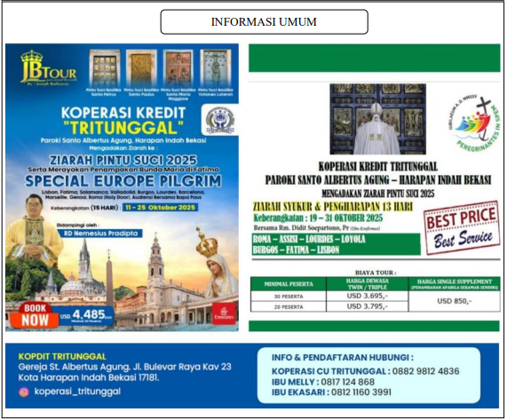 Demikian Warta Paroki Harapan Indah, semoga bermanfaat !